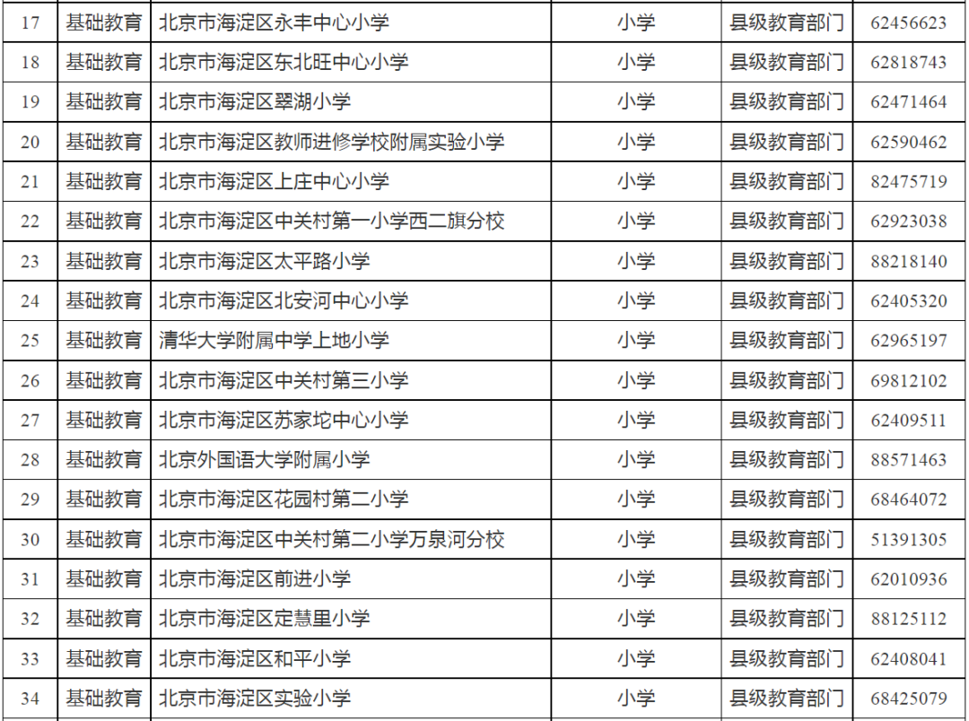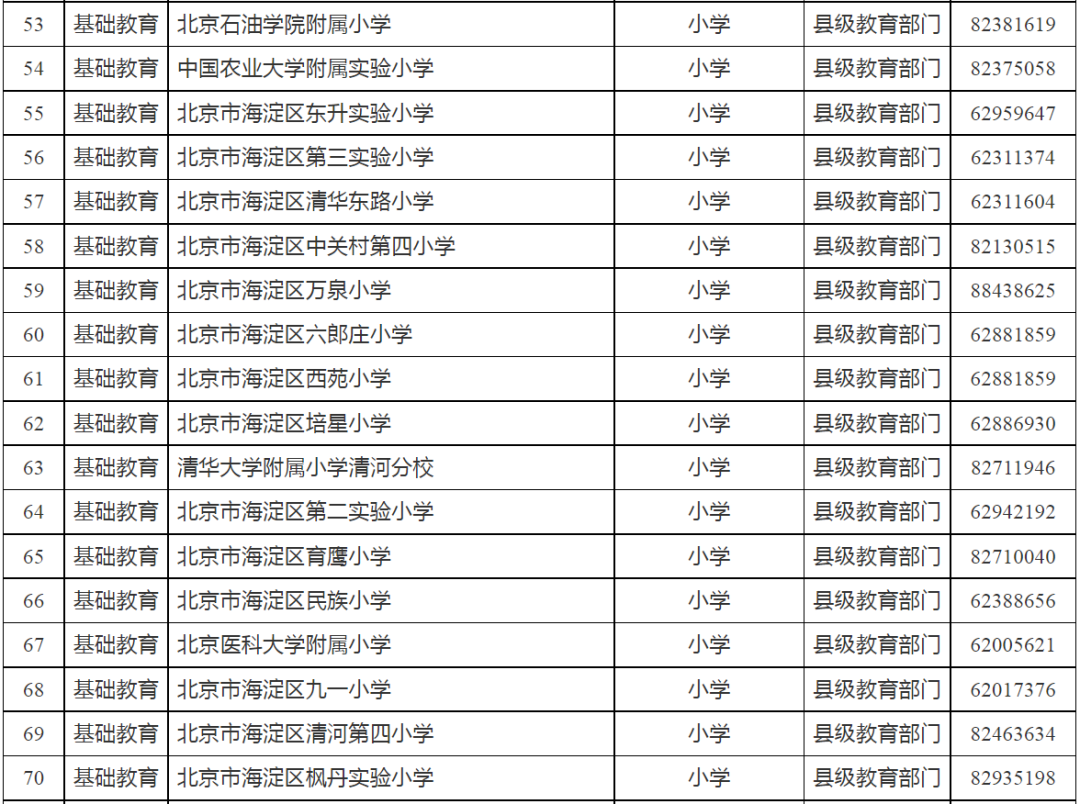 海淀区公办学校名单