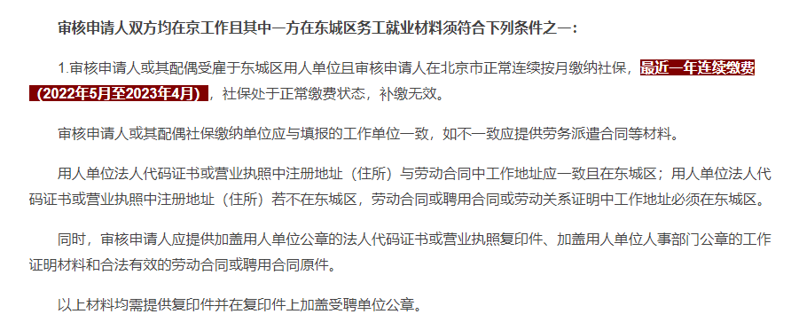 2024年幼升小入学政策将于明年四、五月发布,现阶段参考2023年要求:东城区需要父母双方在京社保且至少一方在东城区缴纳,时间要求为2022年5月至2023年4月(2024年家长可推延一年进行准备)