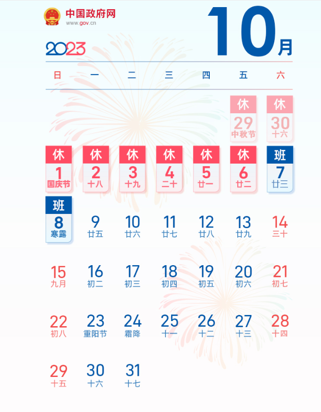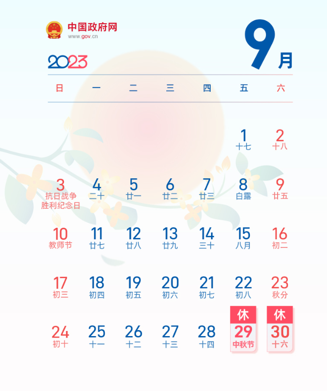 2023年中秋节、国庆节放假安排