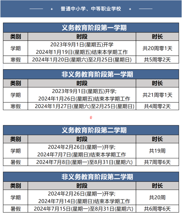 2023年北京中小学、幼儿园秋季开学时间、寒暑假放假时间已确定!赶紧来看2023年北京中小学秋季开学时间是什么时候?寒假何时放假。下一学年,开学、寒暑假时间如何安排?快来看看这份《2023-2024学年度各级各类学校校历》吧!