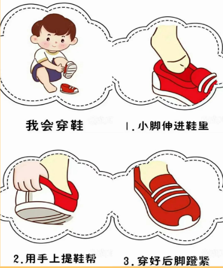 《3~6岁儿童学习与发展指南》中的健康领域指出:“要促使幼儿具有基本的生活自理能力”,鼓励幼儿做力所能及的事情,减少包办代替。生活自理能力是幼儿应该具备的最基本的生活技能,包括自己穿脱衣裤、鞋子,收拾整理自己的物品等等,快快拿出衣裤、鞋子试一试吧!