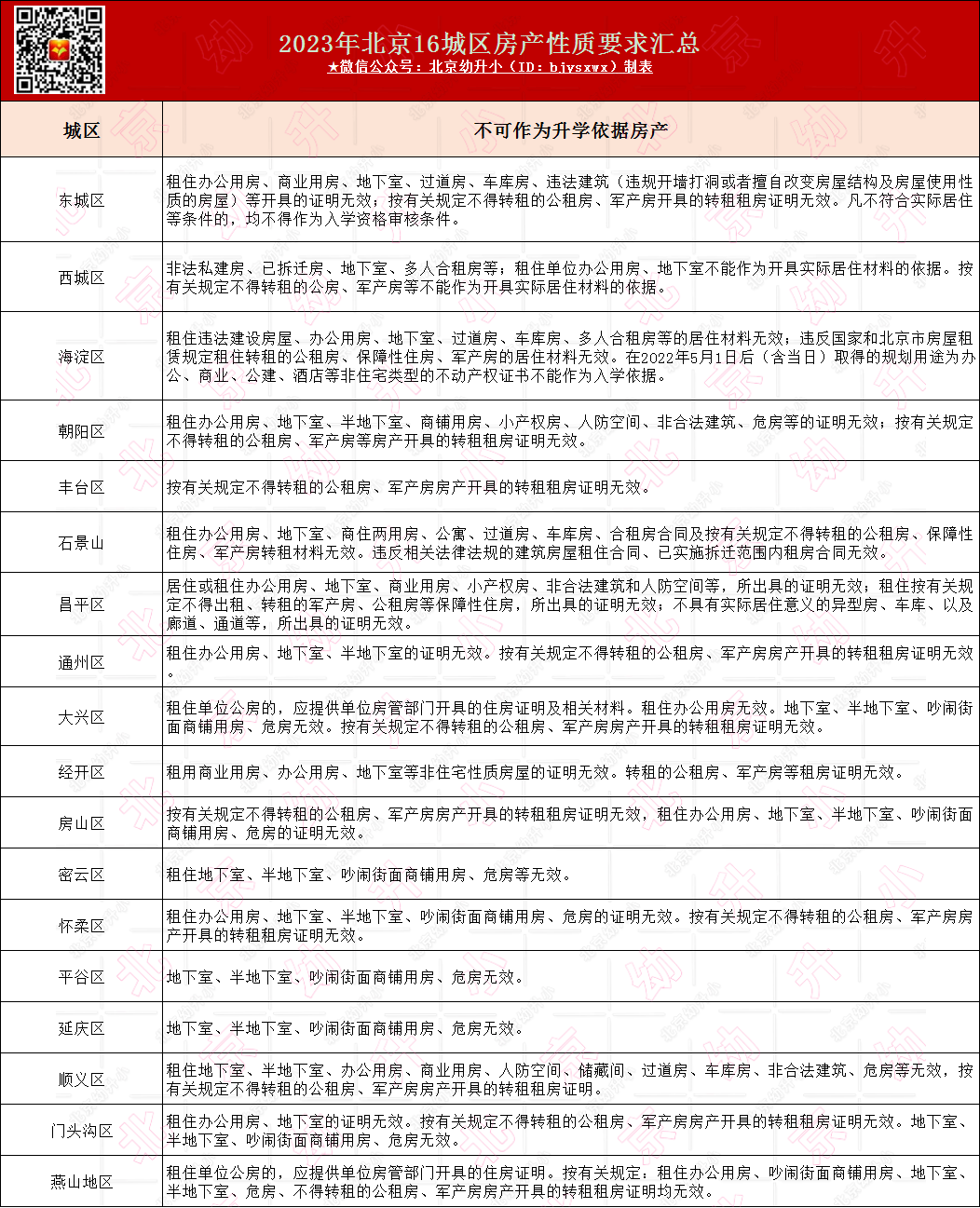 ③每个区要求不尽相同,一般是违建房、转租公租房、军产房、商业用房、地下室等不能作为入学依据,具体以入学当年实际要求为准。