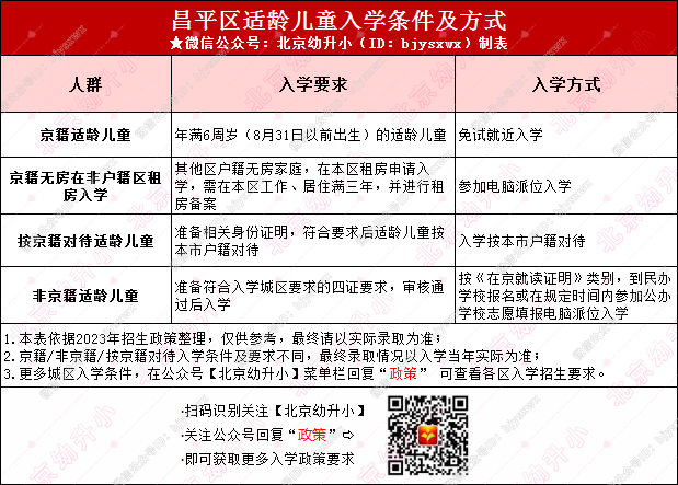 提醒:从昌平区各类人群入学方式要求来看,京籍和非京籍入学方式注意—