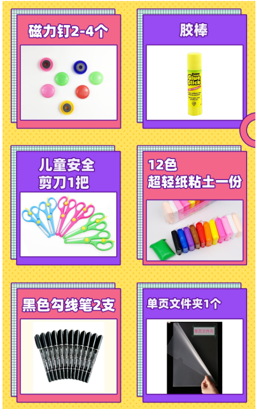 其它学具:一块软垫板;一个透明的,能放进书包的文件袋(用于盛放通知等纸质物品)