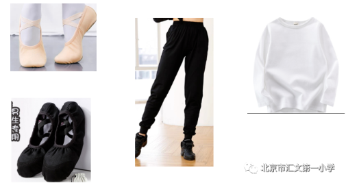 女生:肉色舞蹈鞋,黑色舞蹈裤,白色半袖校服(冬天白色长袖)