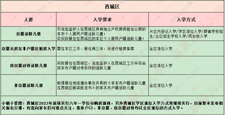 西城区2024年适龄儿童小学入学信息采集、审核、登记的通知