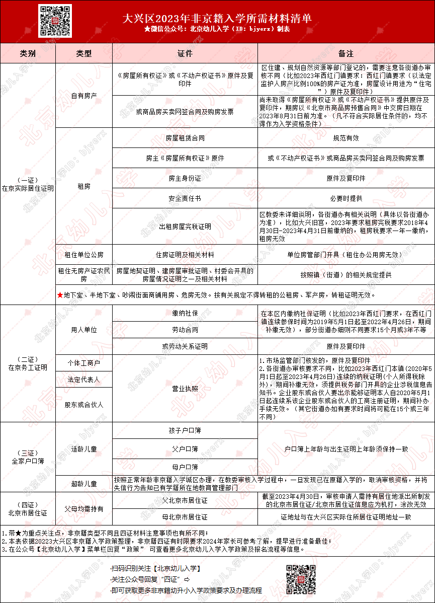 注意:大兴区非京籍幼升小仍需准备“四证”材料,部分有时限要求,家长务必关注;