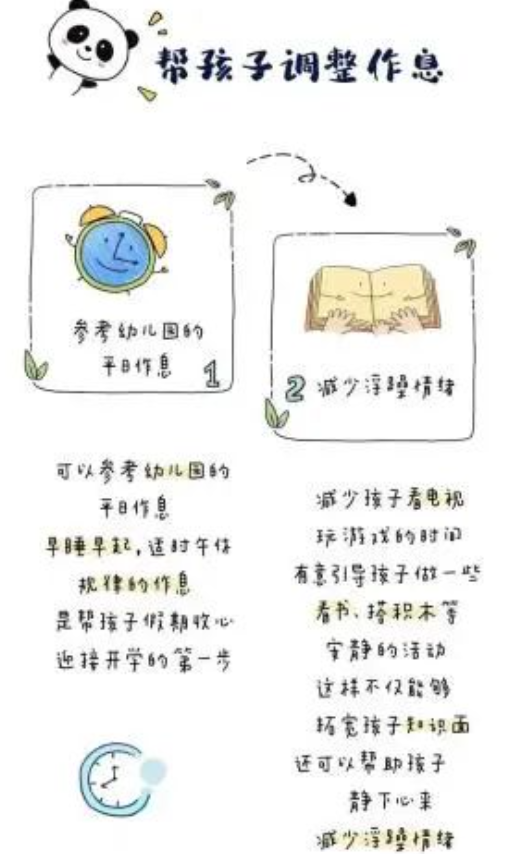 生活作息规律对幼儿来说至关重要,作息规律的幼儿会表现出更积极乐观的心态和更良好的状态。开学在即,请家长们尽量按照幼儿园作息时间,逐渐调整宝贝的生物钟,为开学做好充分的准备。