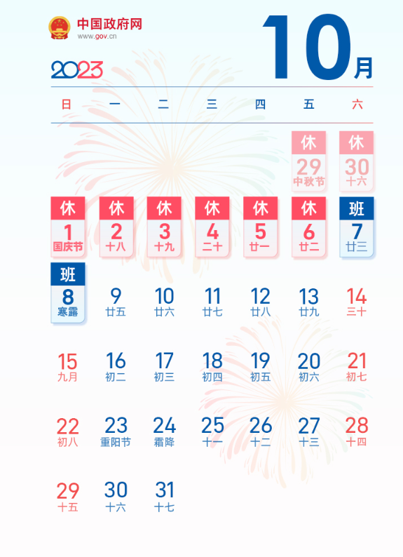 2023年国庆节中秋节放假时间安排表发布!9月29日至10月6日,中秋节国庆节放假调休共8天,但节后10月7日、10月8日上班,需要连上7天班,北京幼升小网为您分享详情。