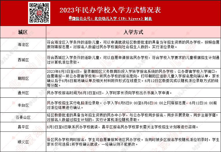 提醒:往年来看,北京各区民办校招生集中于5-6月开展,大家需提前了解学校招生,需要注意的是非京籍需要依照城区非京籍入学要求准备四证,且多区对于民办校报名有详细时间限制。