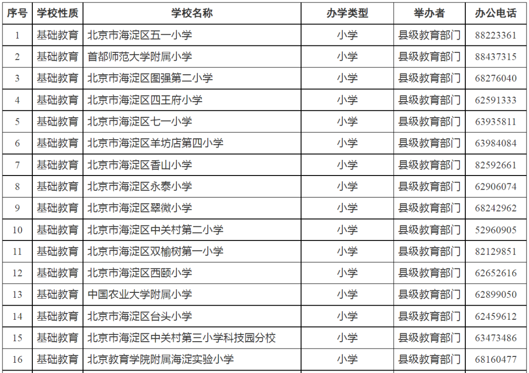 海淀区2023年公办学校名册