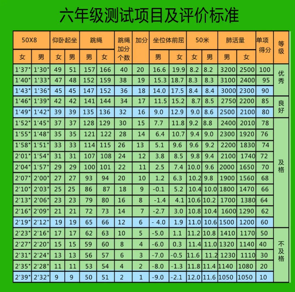 暑假后开展!2023年海淀区中小学1-6年级体体质监测统测项目及考核标准