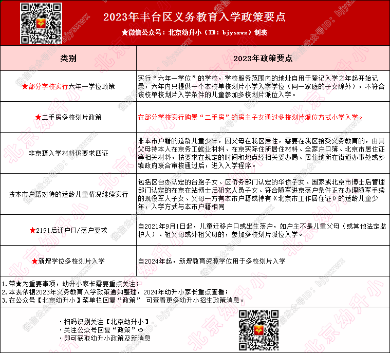 提醒:丰台区延续实行六年一学位、二手房多校划片、迁户多校划片政策政策,2024年起新建校将多校划片入学。