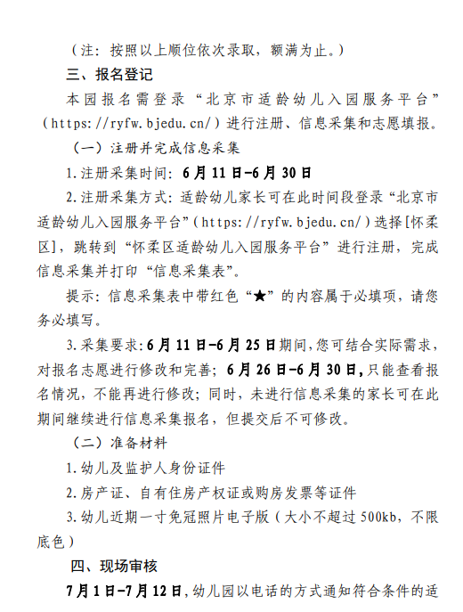 2.怀柔区幼儿园入园需要参加统一入园信息采集,详情可点击查看2024年怀柔区适龄幼儿入园服务系统信息汇总(报名通知、招生简章、入园信息采集系统等);