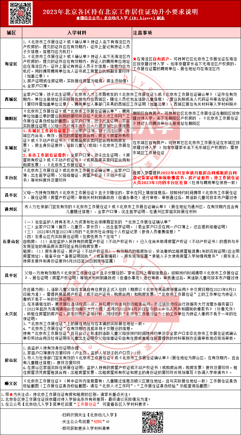 提醒:各区北京工作居住证入学要求不同,2024年幼升小家长可提前参考(实际一入学当年要求为准)