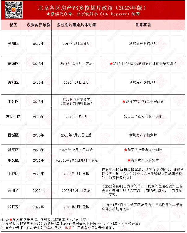 根据2023年入学政策来看,经开区、通州区首年落地执行新购房多校划片政策,具体要求如下: