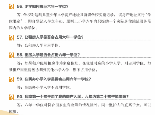 继续对适龄儿童少年入学房产地址及就读学校实施记录,对入学使用的房产地址实行“学位限定”,即自登记入学之年起,原则上小学6年内、初中3年内只提供一个实际居住地址服务范围内的入学学位(符合国家生育政策的除外)。该房址如再有入学需求,以多校划片方式协调解决。
