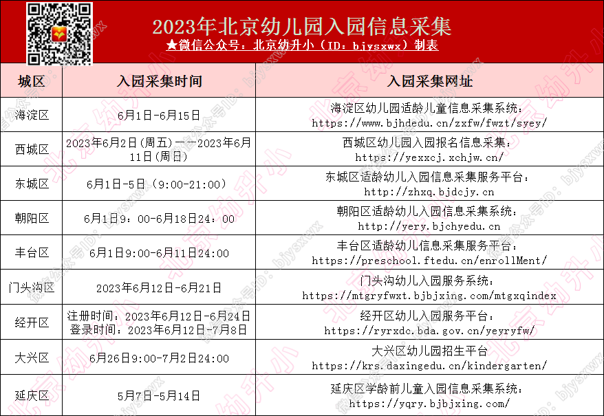 从目前北京各区幼儿园招生来看,朝阳区、西城区、海淀区、东城区等需要统一进行网上信息采集,家长可以通过官方发布的网址在规定时间内进行报名: