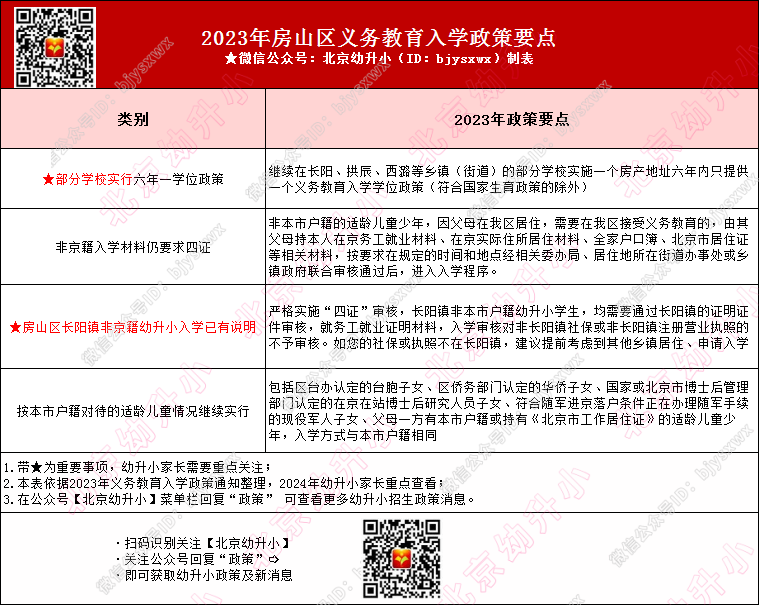 提醒:房山区延续实行六年一学位(部分小学)、按京籍对待等政策,值得关注的是,2024年房山区长阳镇非京籍幼升小入学要求时限要求12个月,2024年入学家长一定要提前准备了。