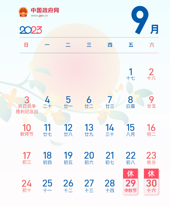 2023年中秋节国庆节放假9月29日至10月6日调休共8天,9月29日凌晨起高速路免费通行,节后连上七天班,北京幼升小网为您分享详情。