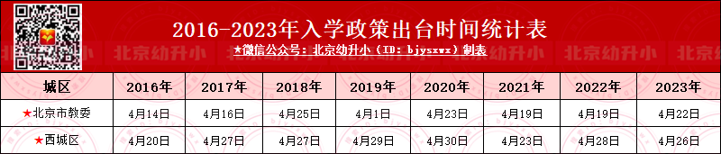 参考近几年,北京市义务教育政策、西城区入学政策集中于四月中下旬发布,详细时间可参考下图: