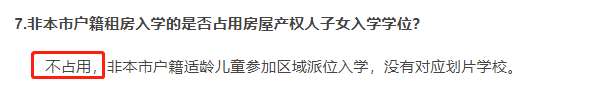 参考《昌平区2023年义务教育阶段入学相关问题解答》,非本市户籍租房入学占用学位吗: