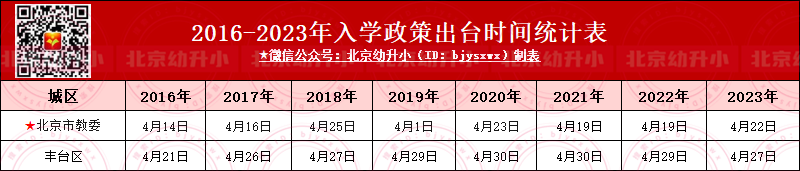 参考近几年,北京市义务教育政策、丰台区入学政策集中于四月中下旬发布,详细时间可参考下图:
