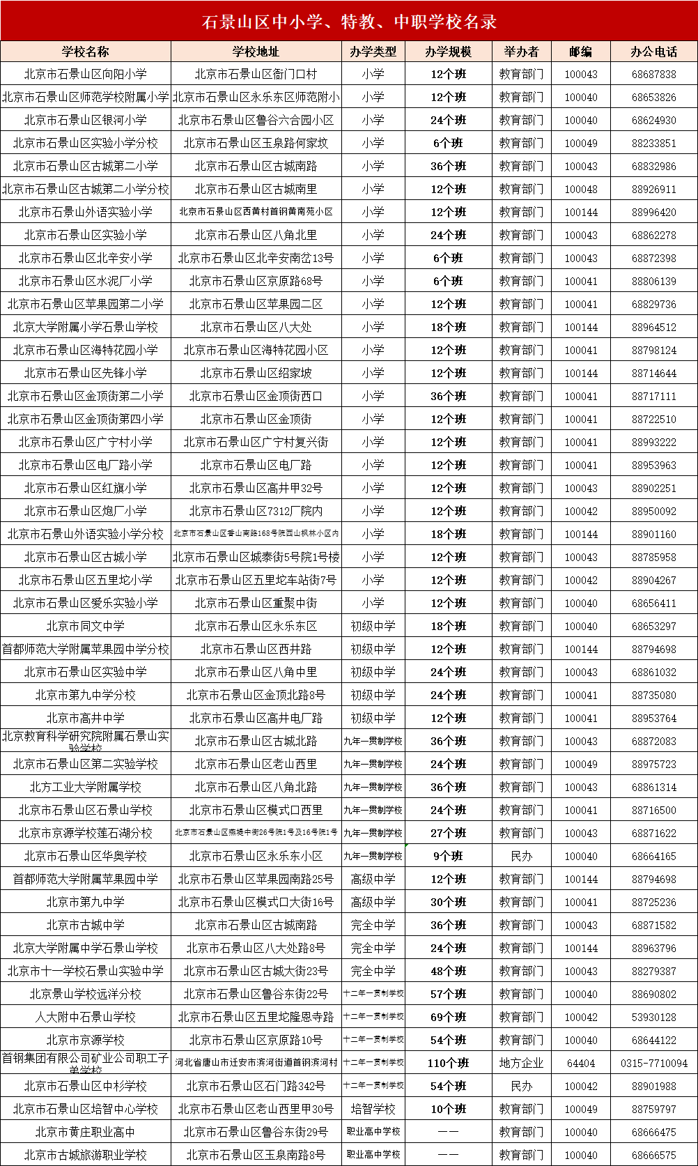 温馨提醒:本文参考2024年幼升小:石景山区中小学、特教、中职学校名录整理分享,具体请以实际要求为准。