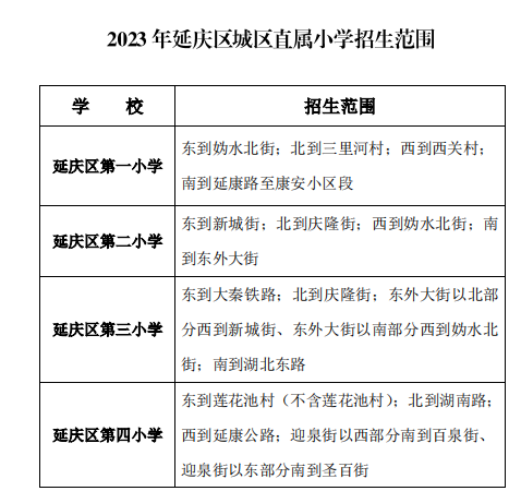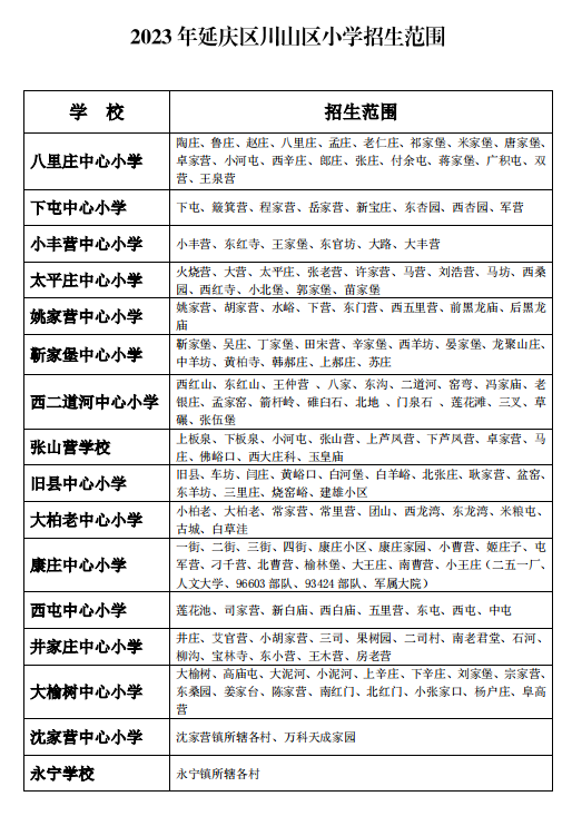 2024年北京幼升小参考:延庆区各小学校招生范围