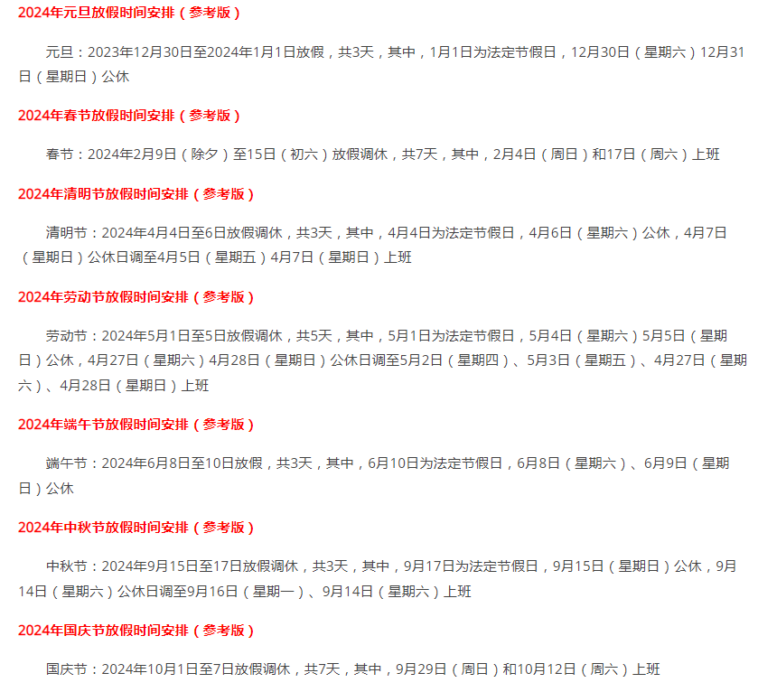 以上是关于2024年法定节假日的一些放假安排,仅供参考,具体放假时间还是要以实际为准。