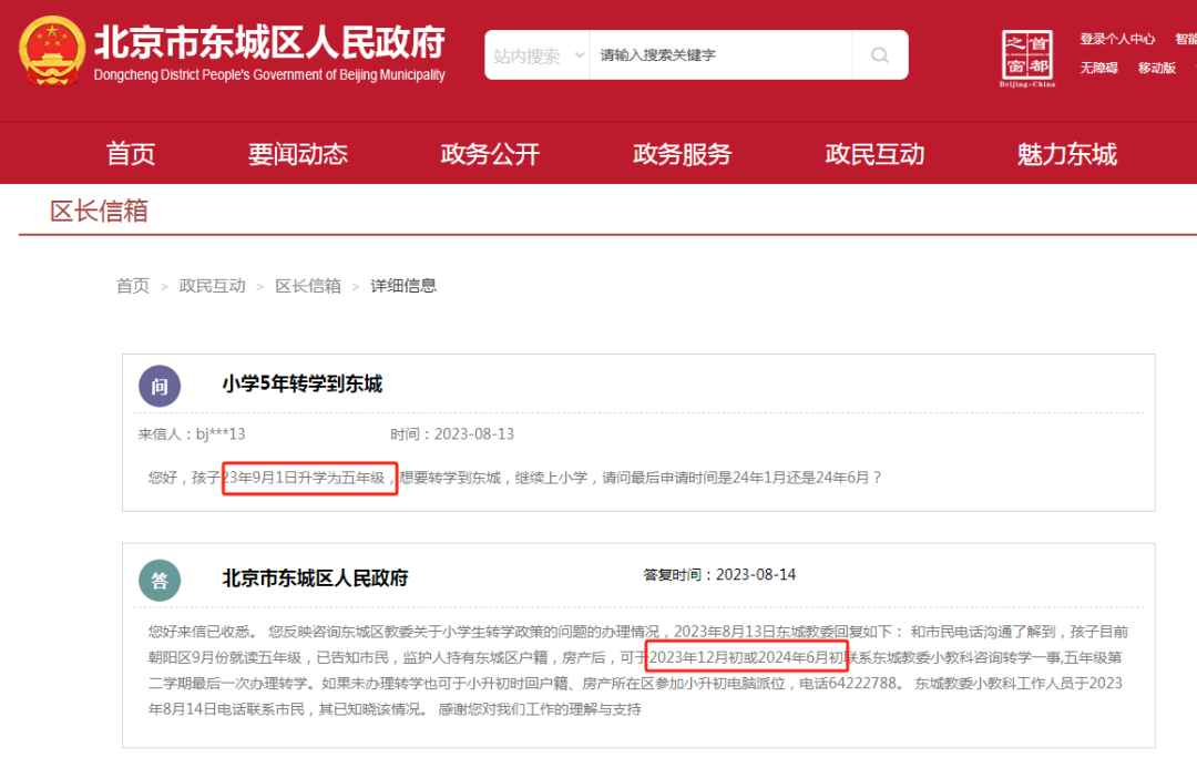 东城区官方回复小学小学转学咨询时间在2023年12月初或2024年6月初!