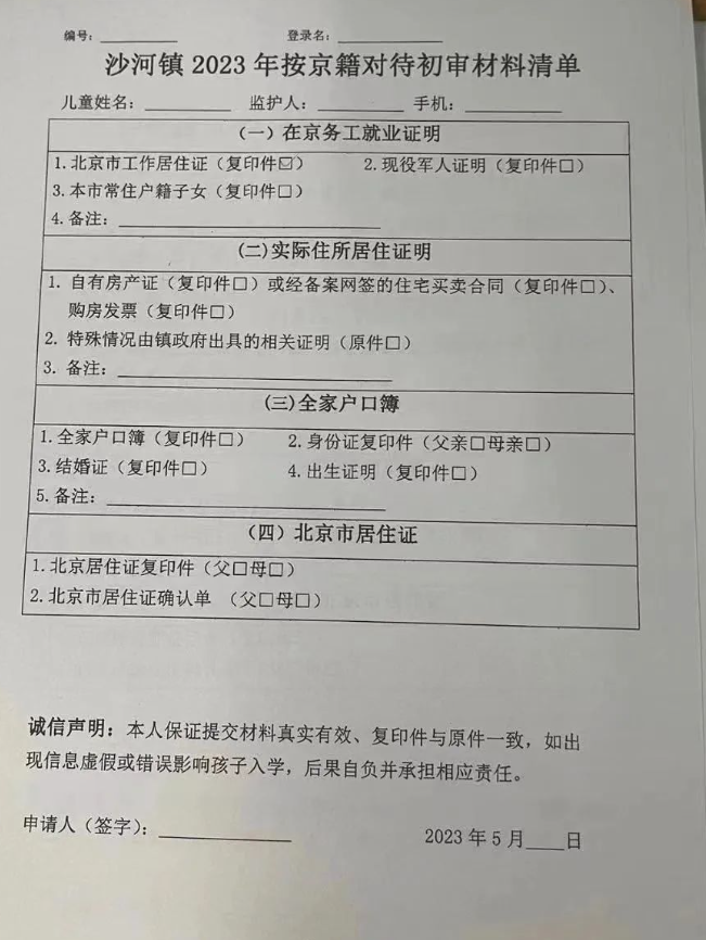 详细查看:2023年幼升小昌平区沙河镇按京籍对待审核材料清单