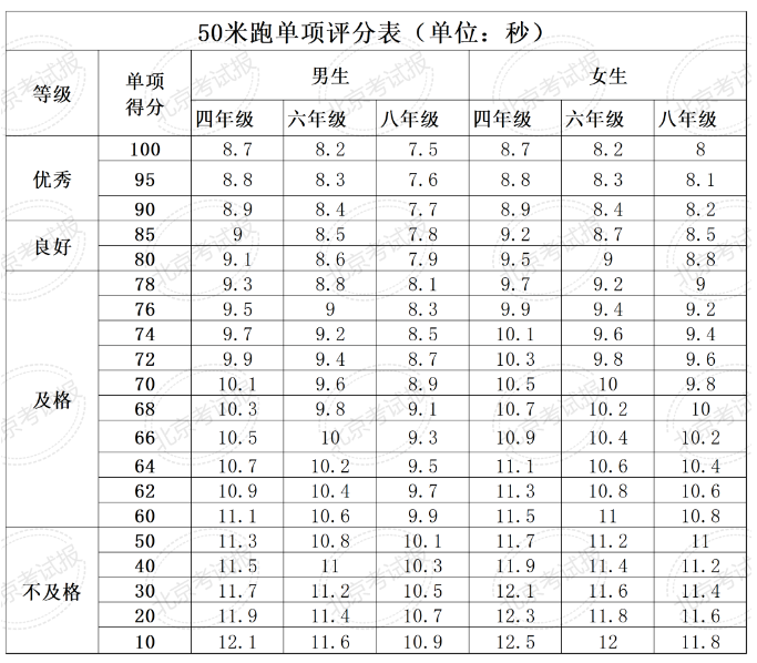 温馨提醒:北京中小学体测完整内容可查看2023年北京小学1-6年级体测项目及评分标准汇总(各年级男生、女生版)。