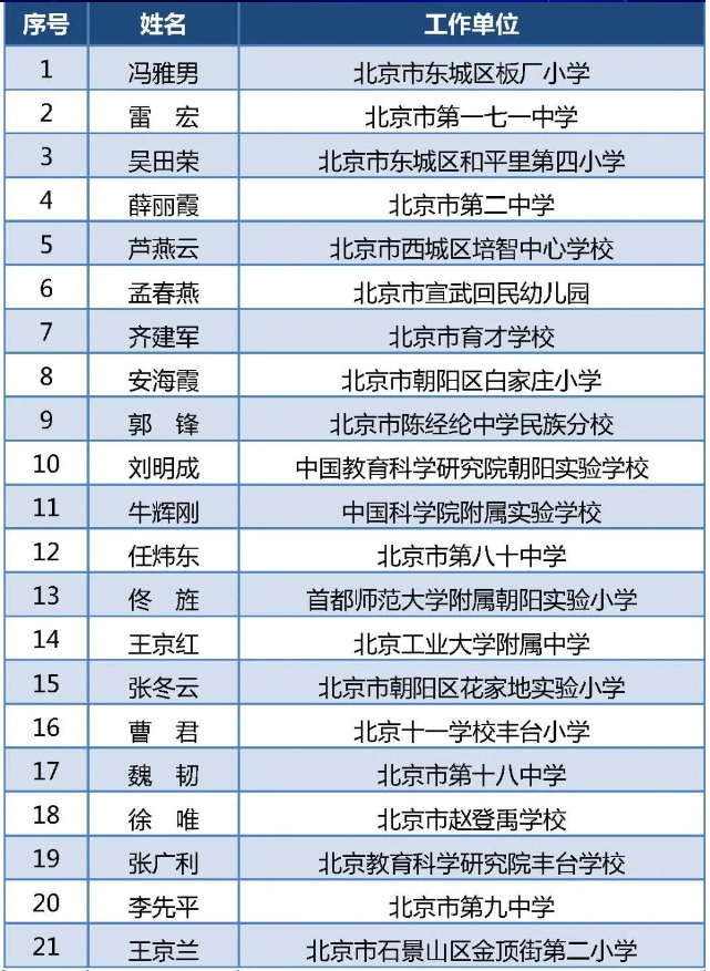 2023年北京市中小学特级校长人选名单正在公示