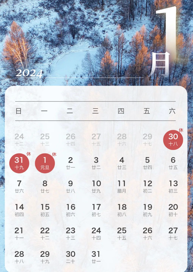 2024年元旦放假时间具体安排