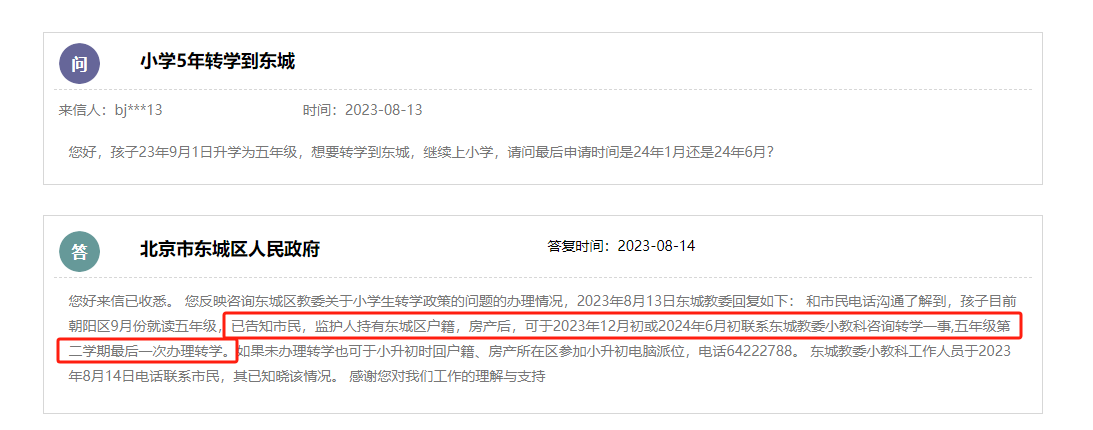 东城区转学时间信息