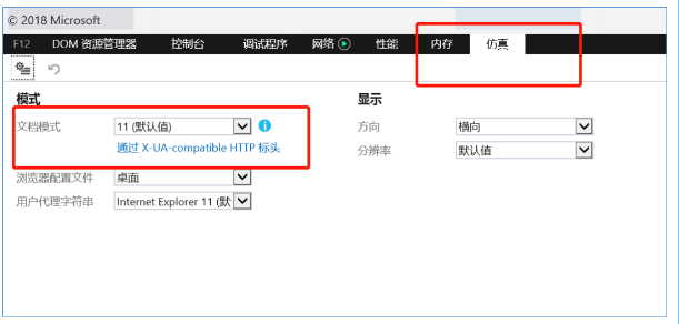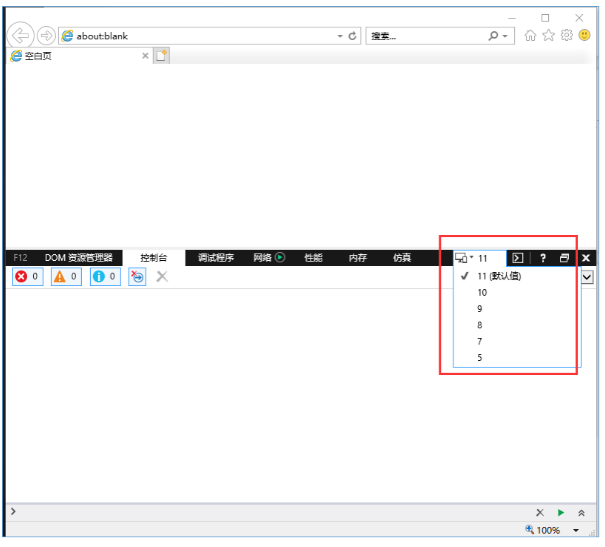 打开IE浏览器,点击“F12”键,会出现浏览器模式设置,要求此处设置的版本必须与浏览器实际版本一致。