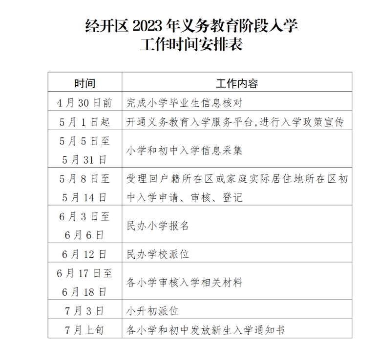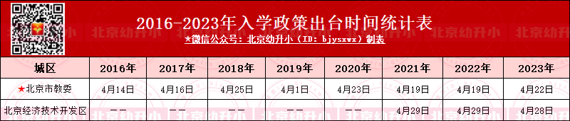 参考近几年,北京市义务教育政策、经开区入学政策集中于四月中下旬发布,详细时间可参考下图: