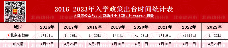 参考近几年,北京市义务教育政策、顺义区入学政策集中于四月中下旬发布,详细时间可参考下图:
