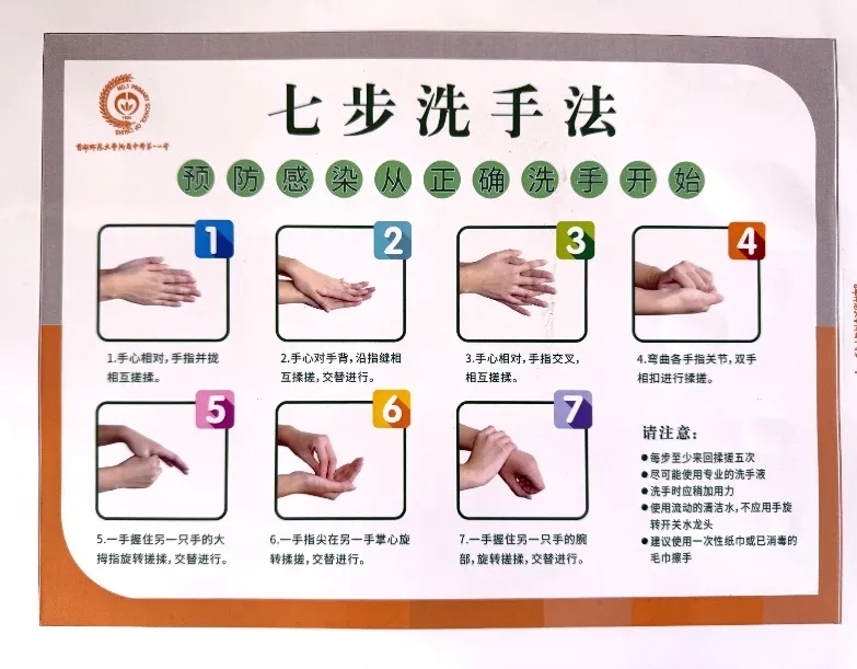 1.科学洗手:教会孩子正确洗手是预防传染病最简单、最有效的方法。请监督孩子在使用洗手液(或肥皂)和流动水时,按照“七步洗手法”清洁双手,特别是在餐前、便后、外出回家后。