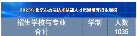 2025年北京市高端技术技能人才贯通培养招生规模
