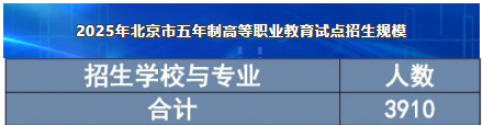 2025年北京市五年制高等职业教育试点招生规模