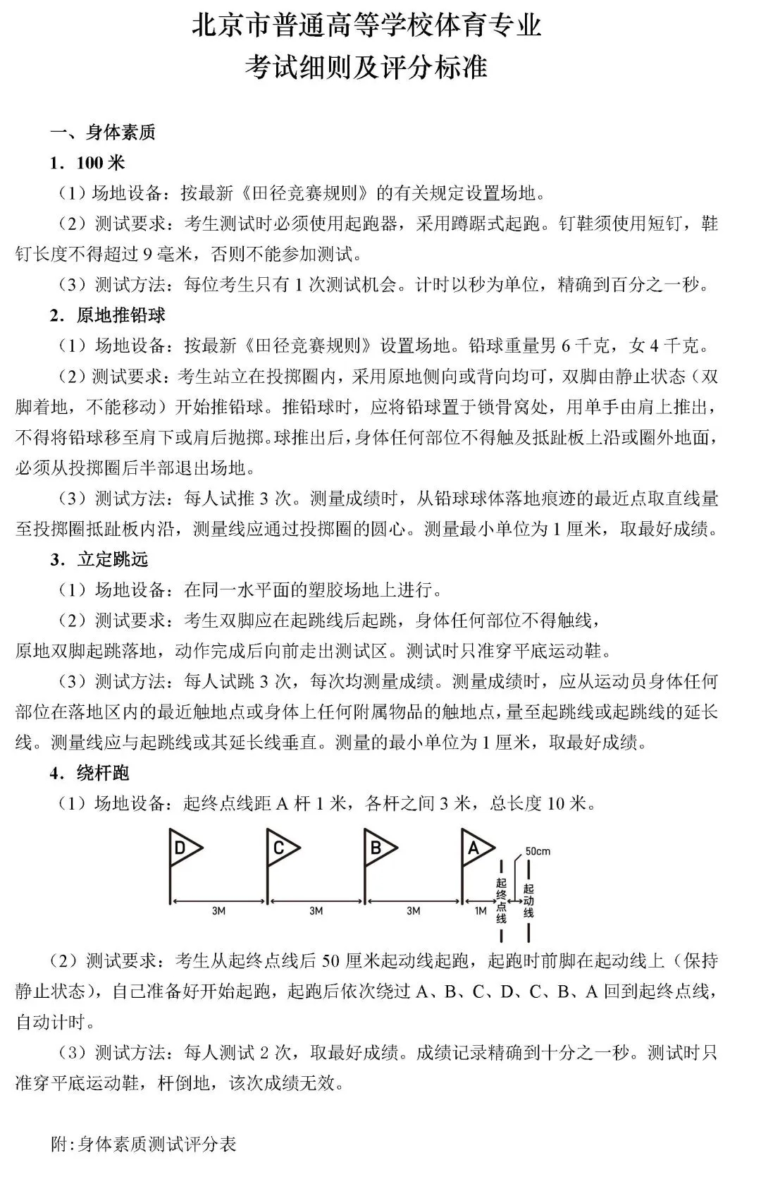 北京市普通高等学校体育专业考试细则及评分标准(2026年)
