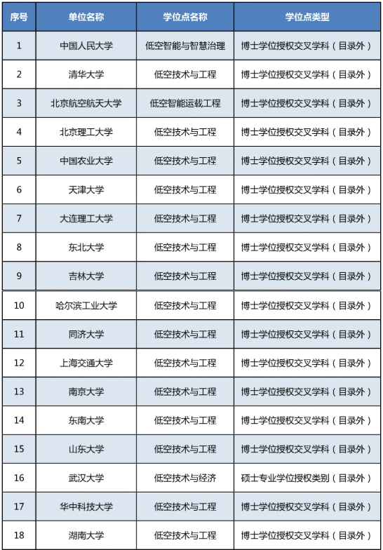 本次超常布局学位授予点,主要以“低空技术与工程”学位点为主,24所高校获批新增超常布局学位授予点。