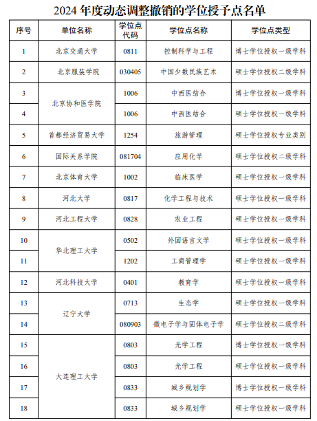 完整名单→立即下载:2024 年度动态调整撤销的学位授予点名单