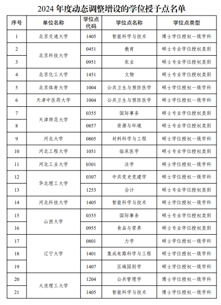 完整名单→立即下载:2024 年度动态调整增设的学位授予点名单