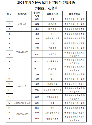 完整名单→立即下载:2024年度学位授权自主审核单位增设的学位授予点名单