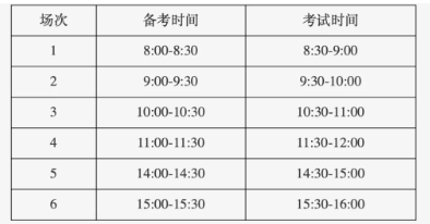 A英语听说机考每天最多安排6场,每场考试时间约30分钟。