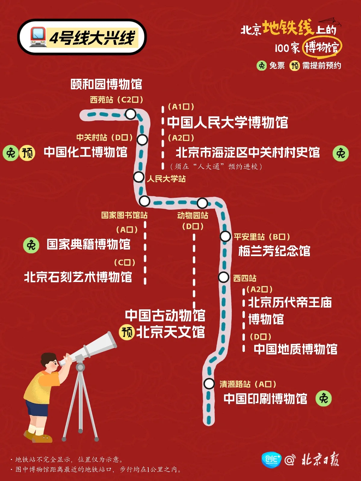 周末带娃遛娃不用愁!北京100家地铁直达博物馆名单地图正式汇总,涵盖国家自然博物馆、军事博物馆、天文馆等热门场馆,覆盖自然科普、历史文化、非遗艺术等多元主题。多数场馆免费开放,部分支持免预约,按1号线、4号线等地铁线路分类标注地址与打卡亮点,附亲子互动项目提示,让家长轻松规划路线,带娃边玩边学涨知识。