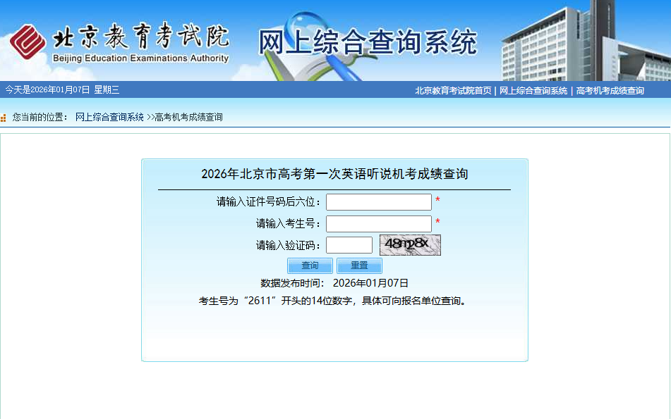 2026年北京市高考第一次英语听说机考成绩查询入口